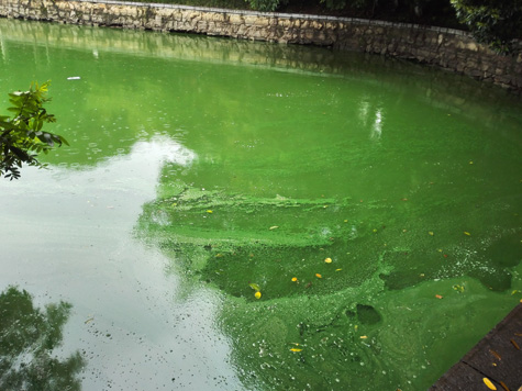 銀河公園水質(zhì)監(jiān)測指標為地表水劣V類,耐污力很強的藍藻肆意生長,連續(xù)多年藍藻爆發(fā)成害,水體伴有異臭味,呈現(xiàn)嚴重富營養(yǎng)化狀況。